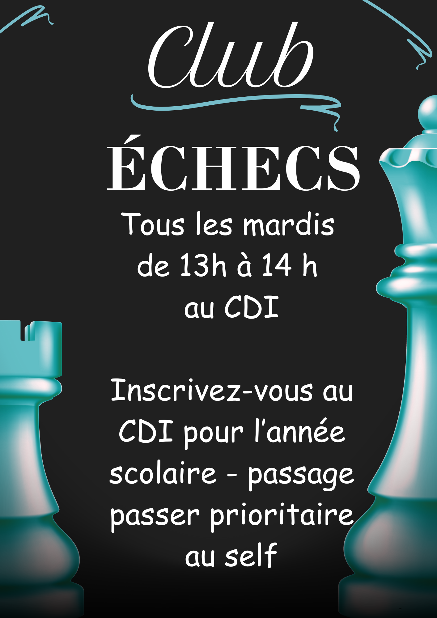 NOUVEAU ! Club Echecs au CDI tous les mardi à 13h à partir du 02/12/25